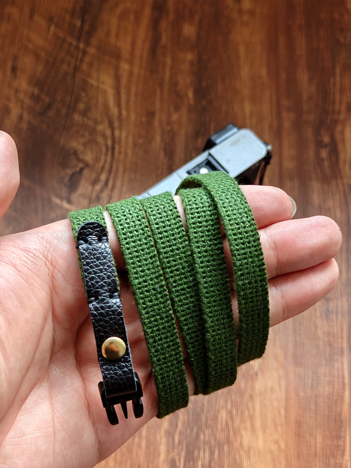 - Canvas rope strap — soft, durable, and comfortable for long use